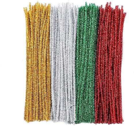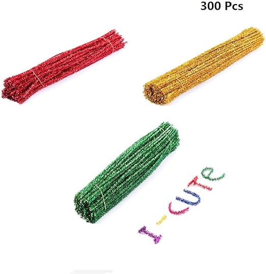 Amazon De Glitzer Chenilledraht Yeahibaby Kinder Basteln Pfeifenreiniger 30 Cm Weihnachten Diy Pfeifenputzer 300 Stuck Rot Gold Grun