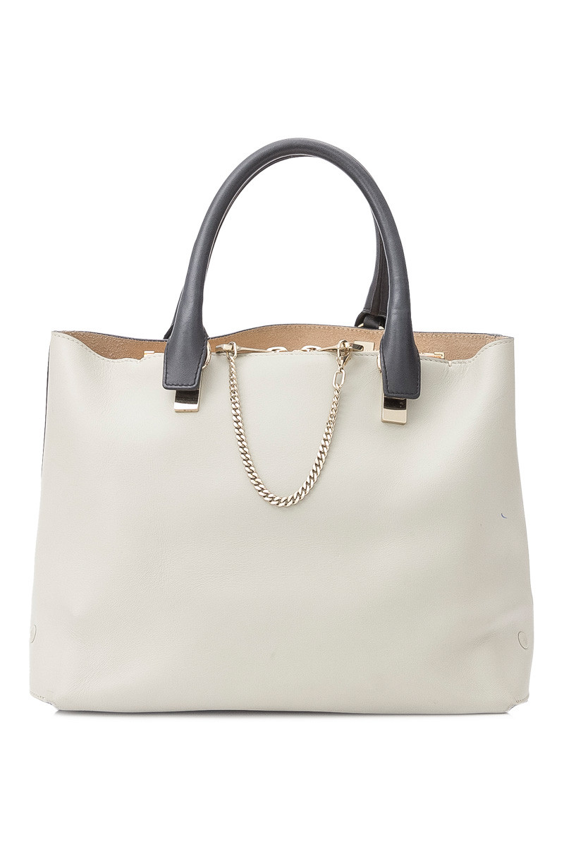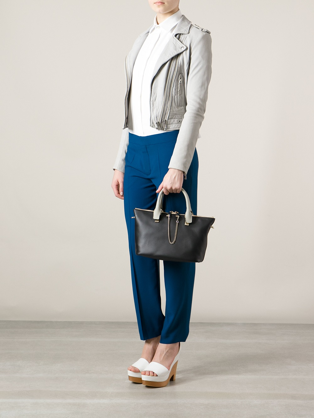 Simple, practical and elegant, Chloé’s 'Baylee' tote is perfect for every day This twotone leather style features a wide, comfortable shoulder strap and a zipped top the chain fastening can be worn as a bracelet, too Shown here with Chloé top id, ring id and shorts id, Marni top id, Reed Krakoff shoes id.