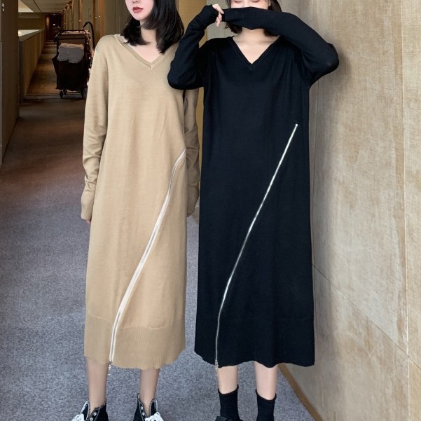 Ootd Styles Korean Fashion Dresses With Zipper Solid Color Long Sleeve Maxi Dress Loose Muslimah Baju Kurung Murah Shopee Malaysia