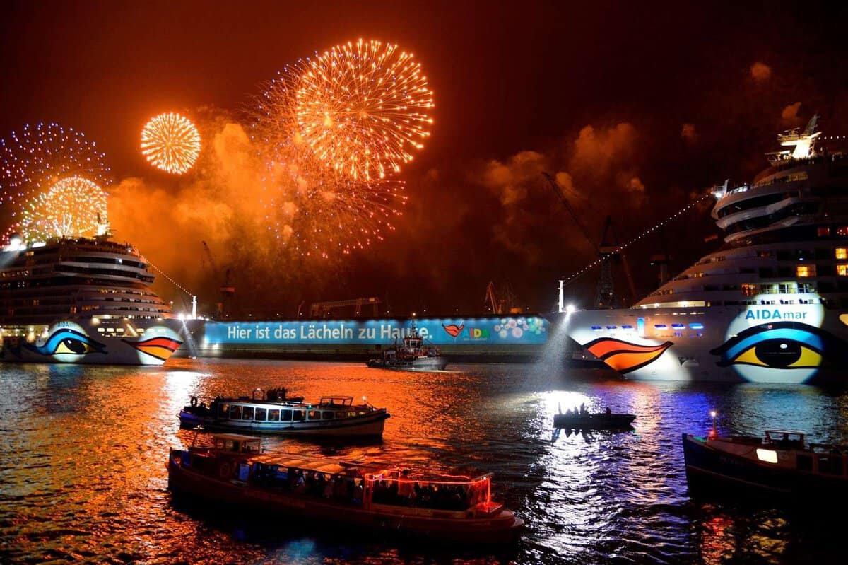 Vier Aida Schiffe Auf Den Hamburger Hafengeburtstag Mit Feuerwerk Aida Kreuzfahrten