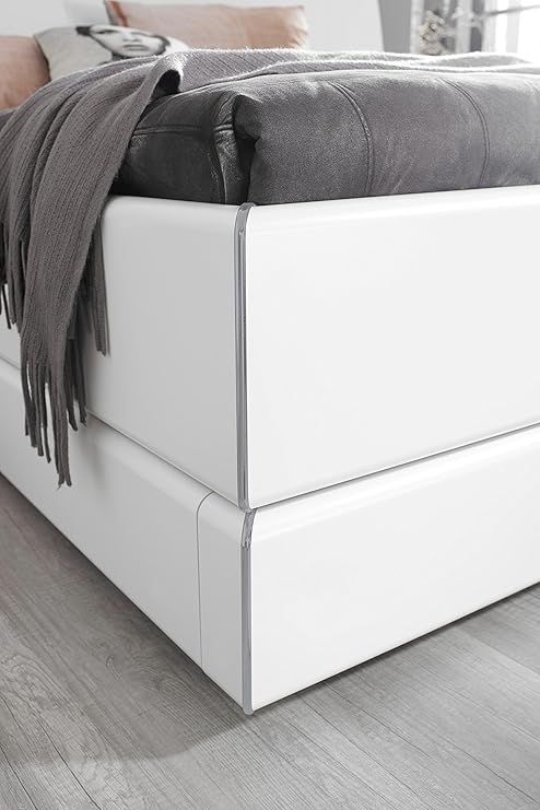 Bett Mavi Extra Weiss Hochglanz Polster Grau 180x0 Cm