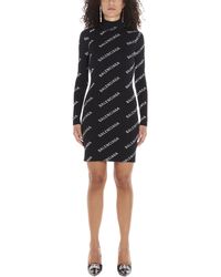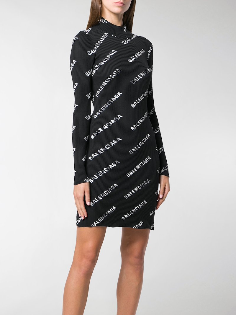 Balenciaga All Over Logo Print Fitted Dress Black Modes