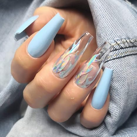 Repost Sky Blue With Aurora Effect And Glitter On Coffin Nageldesign Bilder Nageldesign Nagelideen