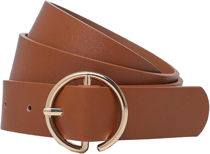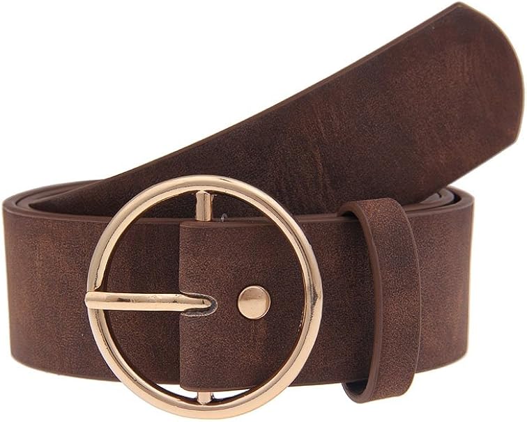 Tanpie Damen Ledergurtel Designer Gold Runde Schnalle Damen Kleid Casual Gurtel Amazon De Bekleidung