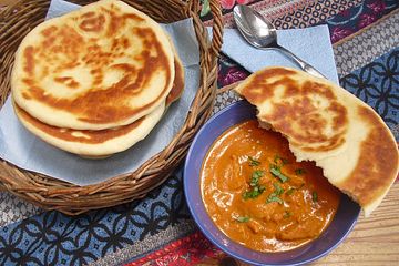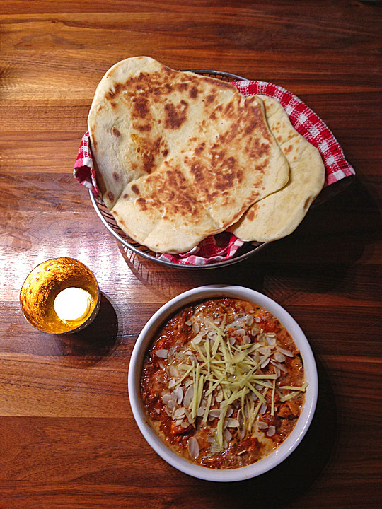 Indisches Butterhahnchen Mit Selbst Gemachtem Naanbrot Rezept Lecker