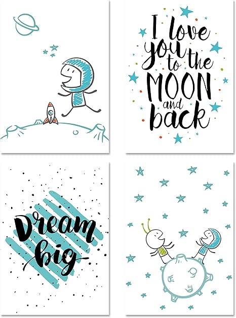 Picsonpaper Kinder Poster 4er Set Astronaut Ungerahmt Din Dekoration Furs Kinderzimmer Kinderposter Geschenk Kunstdruck Wandbild Ohne Bilderrahmen Amazon De Kuche Haushalt