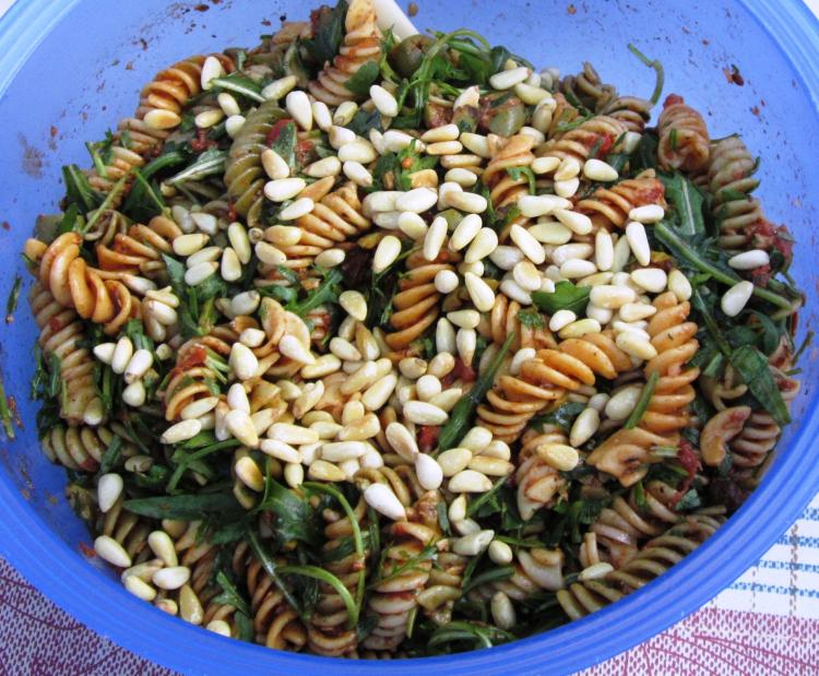 Nudelsalat Mit Ajvar Rucola Gerosteten Pinienkernen Wiewowasistgut Com