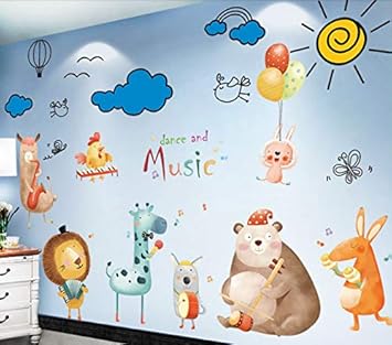 Cartoon Wand Aufkleber Tier Konzert Kinderzimmer Wand Dekorative Tapete Urlaub Sonne Schlafzimmer Hintergrund Wand Selbstklebende Wandmalerei Amazon De Baby