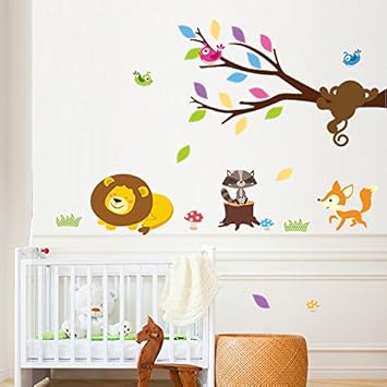 Mznm Cartoon Tiere Lowe Affe Baum Vogel Wand Aufkleber Fur Kinder Zimmer Home Decor Diy Wandmalerei Kunst Kinderzimmer Wandtattoos Kinder Geschenk Amazon De Baumarkt