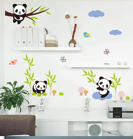 Weaeo Cartoon Wald Panda Bambus Vogel Baum Wand Aufkleber Fur Kinderzimmer Baby Kinderzimmer Einrichtung Tiere Wand Aufkleber Wandmalerei Kunst Poster Amazon De Kuche Haushalt
