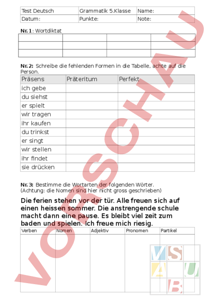 Klassenarbeit Deutsch Klasse 5 Wortarten 4teachers De