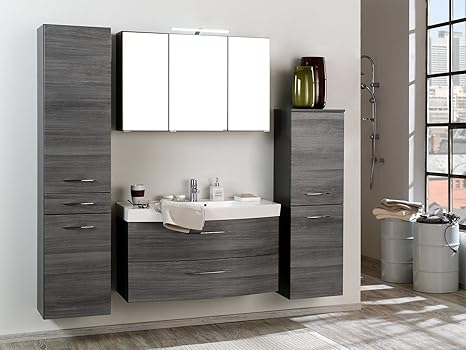 Mobelando Badezimmer Komplettset Schrank Bad Waschtisch Mobel Set Spiegel Graphit I Amazon De Kuche Haushalt