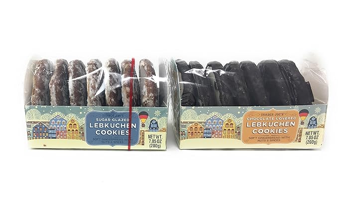 The Lebkuchen Cookies, a soft gingerbread cookies, are a traditional holiday cookie in Germany. Trader Joe's While the consistency of these festive Germanmade cookies seemed promising (soft and chewy), the flavor disappointed There was no hint of real gingerbread or spice whatsoever, like eating a weird fruit cake patty coated in chocolate Fail. NEW Decked Out Tree Cookies 🆕 Gluten free Candy Cane JoeJoe's NEW Gluten Free Mini Panettone 🆕 NEW Gingerbread Cookie Mug Hangers 🆕 Gingerbread House Kit Gingerbread People Gingerbread Turkey Trot Cookie Kit Holiday Ornaments Cookie Kit Lebkuchen Cookies Chocolate Covered Lebkuchen Cookies Sugar Glazed Marzipanstollen.
